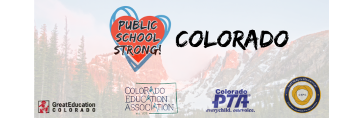 Public School Strong Colorado is a collaboration between Great Education Colorado, Colorado Education Association, Colorado PTA, and Colorado Statewide Parent Coalition, as well as our national partner HEAL Together. We meet the first Thursday of every month on Zoom at 5 pm MT.